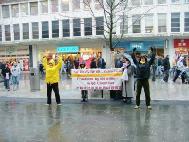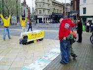 2004年11月21日,法轮功学员在英国布里斯托尔(Bristol)城市的市中心展示功法和真象展板,并向过往路人讲发生在中国的迫害真象。