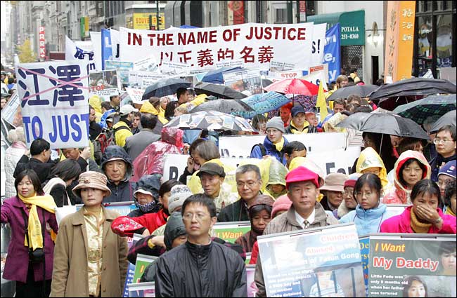 ![]() 图:法轮功的支持者们在麦迪逊大道上游行 |