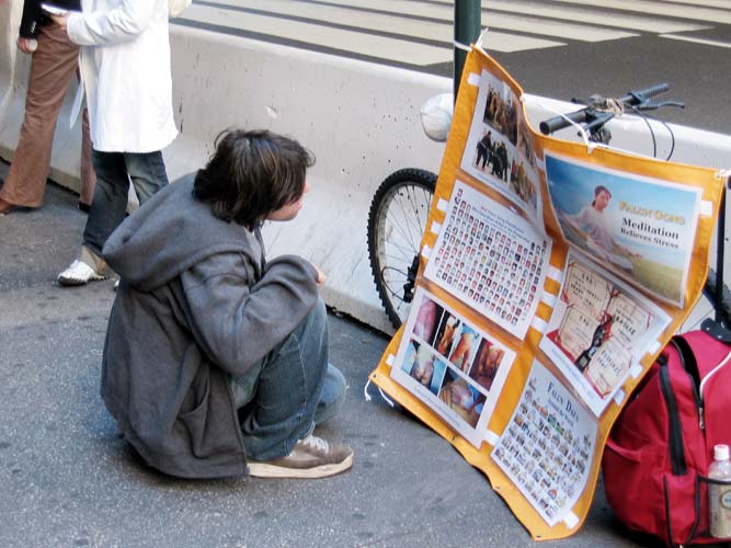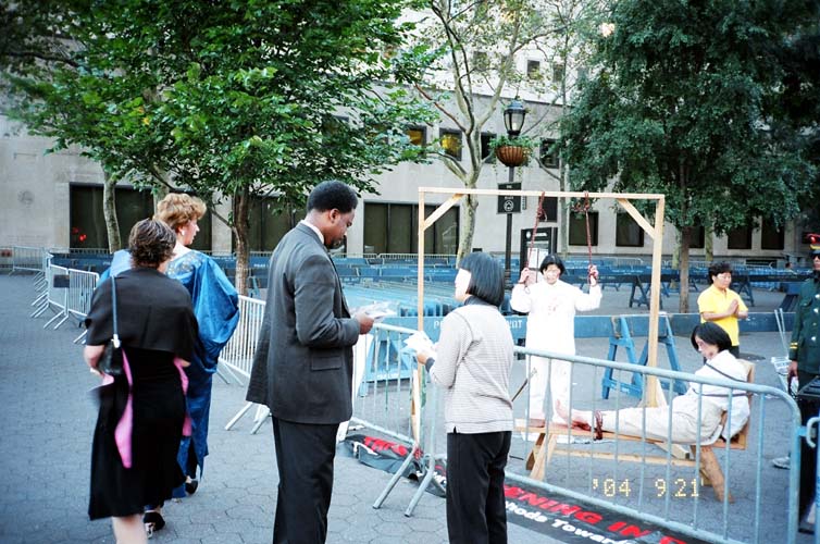 ![]() 聚精会神看着展板的行人 | ![]() 反迫害酷刑展 |
