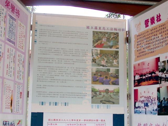 ![]() 宜兰高商法轮功社团的展板 | ![]() 罗东高工法轮功社团的展板 |