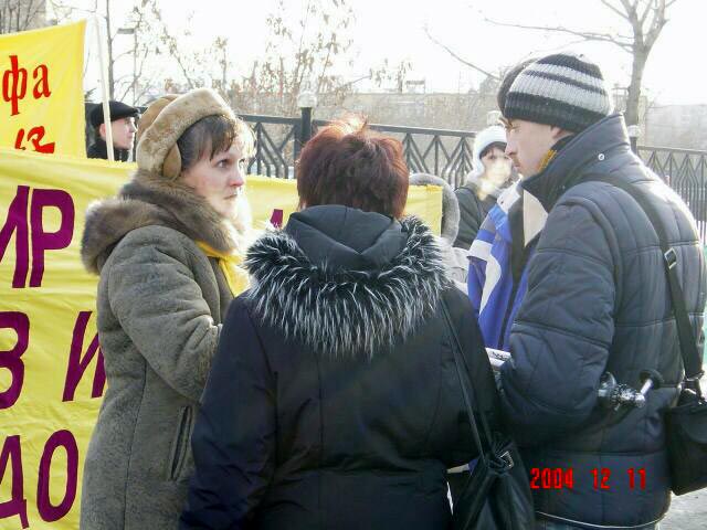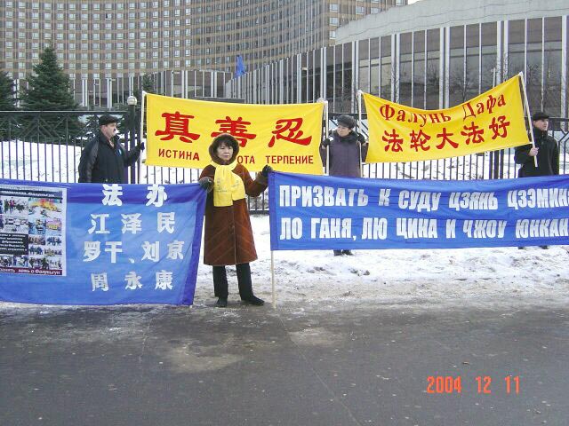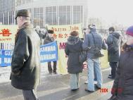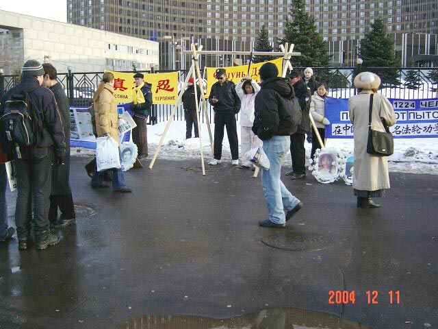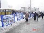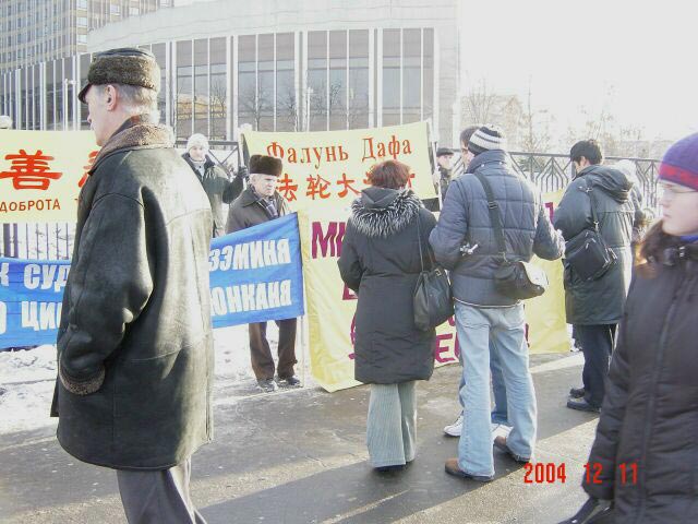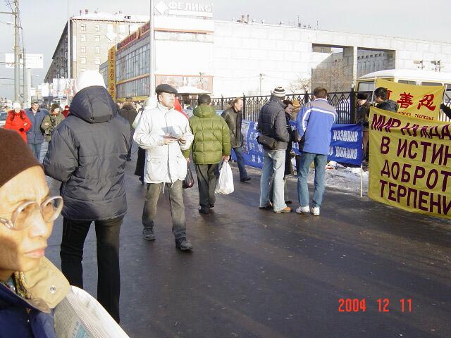 从这里路过的人有莫斯科市民,也有外国人和中国人。历时三个小时,学员们向路人讲真象,发放大量的真象资料。有许多人停在展板前认真的观看,在中国法轮功学员遭迫害的真象震撼着世人。有位中年妇女认真看过每个展板还拿了真象资料边走边看,当她已经走到地铁口时又返回来,向学员问了一些问题,又要了一些资料,并在呼吁制止迫害的征签册上签了名才离去。一对年轻人看过标语和展板后主动走过去签名和索要真象资料。