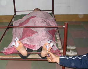 这样的事情每天都在发生着。吉林省榆树市32岁的法轮功学员李淑花2003年9月24日被警察从家里骗走,让她到派出所写一份材料。16天后李淑花惨死监狱,遗体左眼深陷、眼眶发青,全身布满红点,解剖发现腹腔里有大量血水。同时遭关押的丈夫杨占久曾亲耳听到妻子遭警察毒打时声声惨叫(杨占久后来被判7年,现关押在吉林省四平监狱)。公安内部有人私下透露,李淑花当时被警察打瞎眼睛后灭口。
