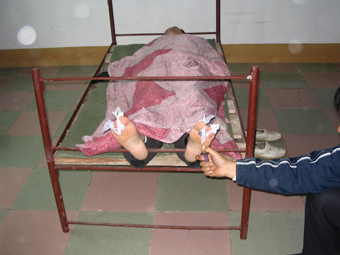 就在这非常祥和的意境中,她给我看了一些恐怖的照片,炼功人正在遭受酷刑、被电烙铁烫、火烤,浑身布满伤痕。她说“在中国可能有4000到10000法轮功修炼者被酷刑毒打致死,上万的人被关进劳教营或精神病院。”