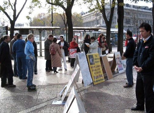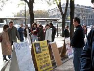 也有一些中国人从这里经过,他们因为被中共江氏邪恶集团灌输了恶毒的谎言,在法轮功的问题上还有着很多疑惑,学员们告诉他们一件件事实真象,并耐心回答他们所提出的一个又一个问题,最后他们对学员说:“经你这样一说,我们就明白了,我们相信你说的这一切,谢谢你!”临走时学员叮嘱他们:“请记住啊:法轮大法好!”他们也笑着答应:“记住了,法轮大法好!我们以后一定会炼的。”