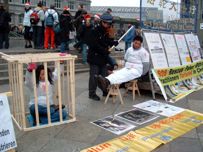 ![]() 酷刑展重现迫害 | ![]() 路人观看酷刑展 |