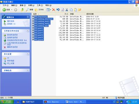 首先下载《风雨天地行》,把所有文件放到一个目录中,文件格式为mpg格式,共11个文件,大小为807M,包括1个片头文件(带beginning字样的)、4个片尾文件(带ending字样的)、6个正文文件(文件名最后为1-6字样的),在制作时可以从4个片尾文件中任意采用一个作为片尾。