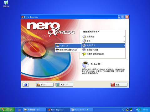 启动Nero(我的版本为5.5.10),按照画面提示依次选择刻录“视频/图片”中的“Video CD”。