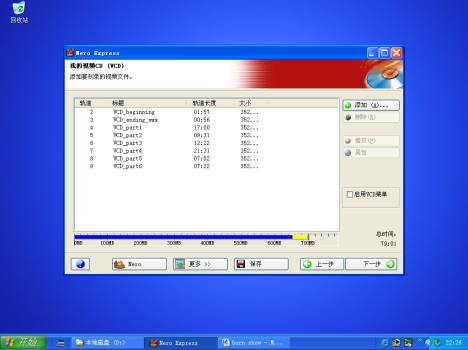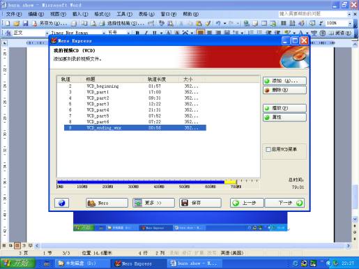 处理几分钟后文件全部添加到要刻录的专辑内,但是文件大小已经变成了约650M(图中的蓝色部分),没有超过光盘的容量700M。 应该是在上一步的处理过程中Nero使文件缩小了,至于具体原理我就不清楚了。