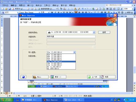 出现刻录设置对话框,在此可以选择刻录机的名称,给光盘起名字,选择刻录速度等,点击刻录即可开始。