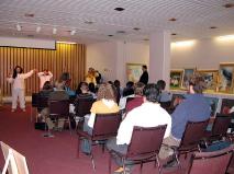 每天有众多观众前来参观,第一天就有百余名师生前来参加开幕式和参观画展。尤其值得一提的是开幕式那天,当地一位姓董的高中教师,带着他11年级的27名学生,冒着大雪,步行2公里,专程来参观画展,为他的学生们上一堂世界信仰课。开幕式上,学员简单介绍了什么是法轮大法,并表演了5套功法。学生们非常感兴趣,问了很多关于法轮大法的问题, 比如: