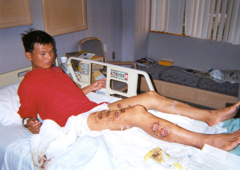 ![]() 法轮功学员覃永洁被中国警察用烧红的铁条烙伤 |