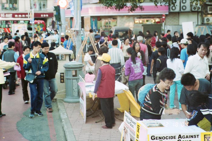![]() 新竹东门城圆环的“反酷刑展”活动 | ![]() 民众不敢相信这场迫害惊讶的表情 |