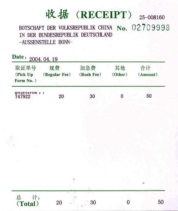 这样我于2004年12月6日星期一坐火车来到中国驻德国大使馆波恩办事处。因为我和约瑟夫2004年4月曾经一起在那里办过我在德国的未婚证明和护照延期(延到2009年底),没出什么问题,马上就拿到了,所以也没太多想这次护照会被扣押,但还是多了一份小心。