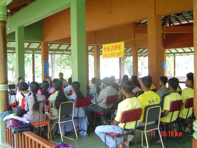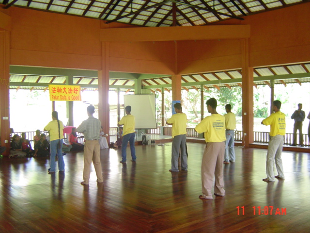 ![]() 向与会者介绍法轮大法 | ![]() 听众座无虚席 | ![]() 功法演示 |