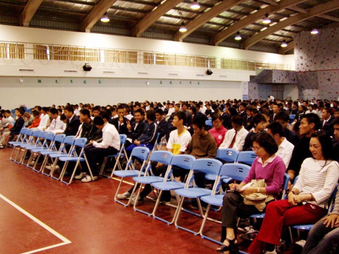 三位主讲人不时借着提一些小问题和同学互动,并赠送回答的同学一朵由台东学员自制的精致小莲花。同学们争相举手,气氛活泼热烈,但整体秩序却非常好。有许多老师说,学体育的孩子,要他们连续坐两个小时中间不下课,在平时是很难要求的,但这次周会学生的表现却让人刮目相看。活动最后三位年轻人以《转法轮》、《绝处逢生》、《为你而来》、《生命的答案水知道》等几本书赠送学校,并分别对全体师生致以最真诚的祝福,为此次温馨而特别的活动画下完美的句点。