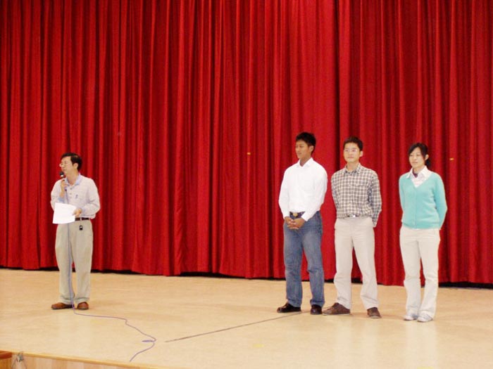 活动的主讲人是两位东华大学研究生及一位文化大学女学生,年轻健康的仪表,活泼亲切的问候,三人一出场就引起学生热烈的欢呼。其中泰祥首先说明虽然三人来自不同的地方,却因为学法轮功而相聚在一起,他们要和大家分享法轮功带给他们生命的美好。