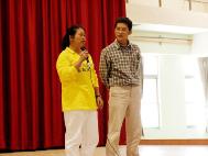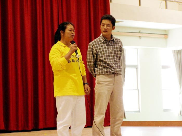 ![]() 台东学员表演功法 | ![]() 母亲说明孩子炼功后的身体转变 |