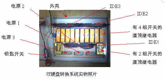 找一临时12伏电源,①用万能表分别量IDE1第1根接线柱到第40根接线柱和IDE2第1根接线柱到第40根接线柱是否通。电源1第1根接线 柱到第4根接线柱与电源2第1根接线柱到第4根接线柱是否通。②转动钥匙,应能听到直流继电器吸合的声音,用万能表分别量IDE1第1根接线柱到第40根 接线柱和IDE3第1根接线柱到第40根接线柱是否通。电源1第1根接线柱到第4根接线柱与电源3第1根接线柱到第4根接线柱是否通。都通,说明成功,否 则检查焊头。③注意,电脑电源插头上的黄线与红线分别是12伏与5伏,不能接反。把转换板固定在机箱内,把钥匙开关在机箱后面固定。经过1年多运行,得心 应手。优点是硬盘完全隔离,表面上看不出来,安全可靠,缺点是安装比较复杂,需一定的动手能力。