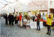 很多人为呼吁释放法轮功修炼者徐幼林(一位德国学员的母亲)签名。徐幼林因分发真象资料,在中国没有经过法律审判程序的情况下被送進劳教所。同时人们还为支持审判迫害法轮功的元凶江泽民签名。在活动之前,学员们已通知了当地的报社,所以经常遇到人们说,我们已经在报纸上读到了有关你们的活动消息。