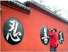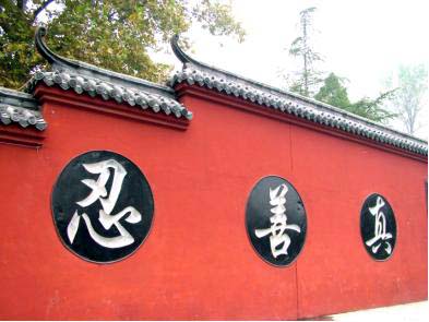 【明慧网2004年12月3日】在中国山东省章丘市百脉泉公园里,有一座始建于明朝景泰元年(1450年)的龙泉寺,现存大殿梵王宫,1996年重建改建。殿内佛像金碧辉煌,壁画形象生动,是善男信女礼佛参禅的所在。黑瓦红墙之上镶嵌三个雕刻大字“真、善、忍”,让许多人感到祥和、亲切。