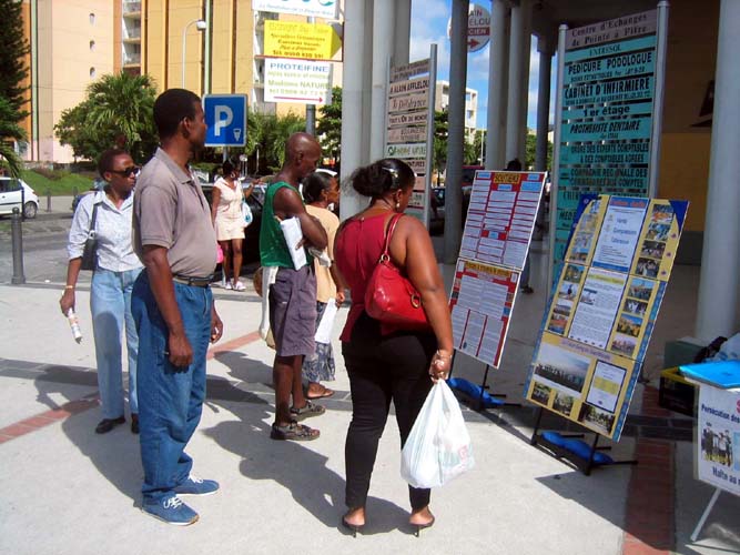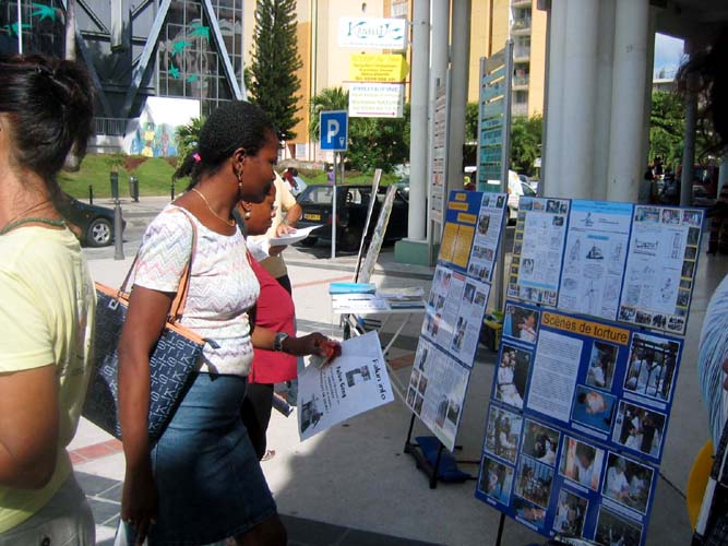 学员们借此机会向人们讲述了发生在中国大陆的法轮功学员所受到的迫害,人们为所看到的、在现如今还存在着如此残酷的行为而惊呆了,特别是这种野蛮行为是由当权者系统性的在全国范围内做出来的。越来越多的瓜德卢普人知道了在中国江氏集团对法轮功的迫害事实并签下自己的名字反对这场迫害。