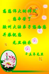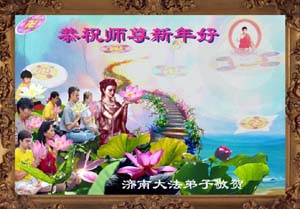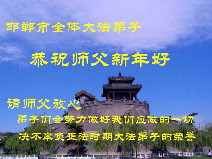 我代表上海市南汇区的大法弟子向师父问好,我们一定会按您的要求把三件事做好,请师父放心。恭祝伟大的师尊新年快乐!