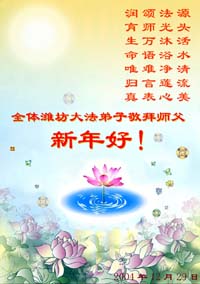 我代表全体山东武城大法弟子向您说一声:师父新年好!师父新年快乐!