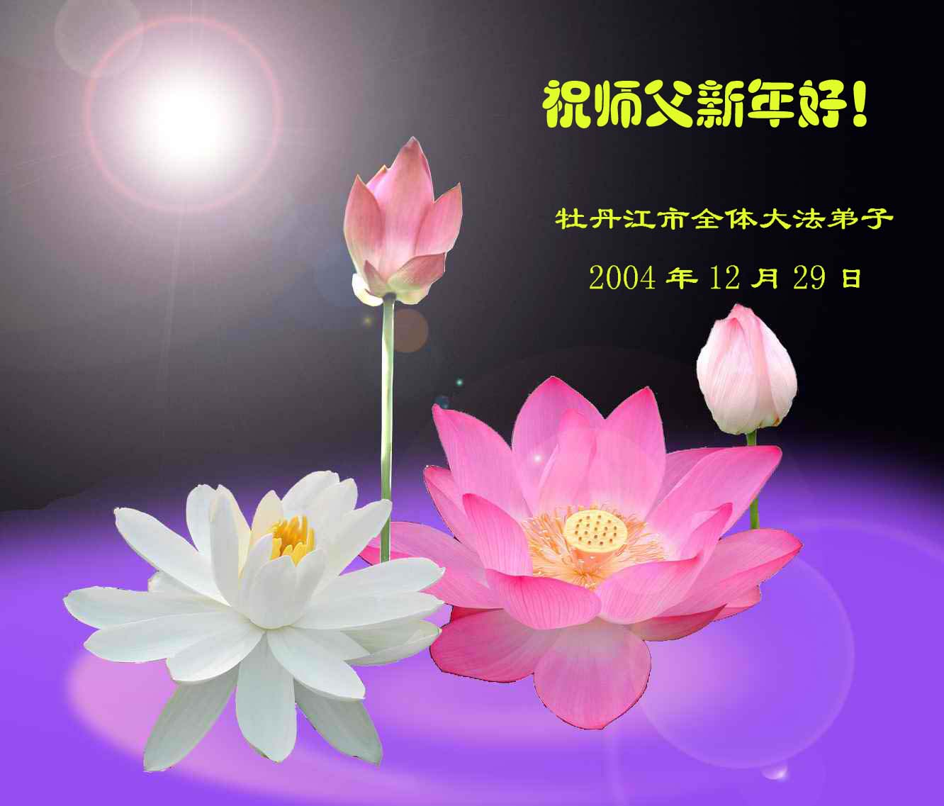 在此2005年新年到来之际,牡丹江市全体大法弟子祝师父新年好,弟子们一定做好三件事,圆满随师父还!
