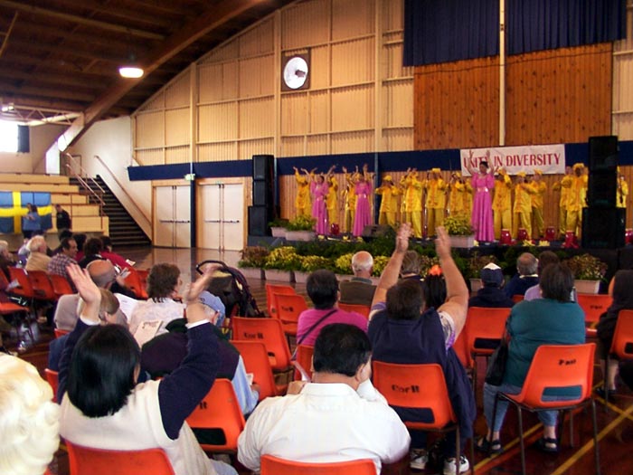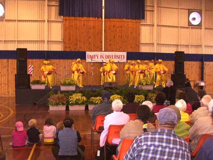 【明慧网2004年12月6日】2004年12月4日,新西兰法轮功学员参加了罗陀如阿多种族事务委员会(Rotorua ethnic council)主办的2004年多元文化节活动(Multicultural festival)。学员们表演了舞蹈“天地”、腰鼓“鼓乐神威”,并展示了法轮功功法,受到民众的欢迎。