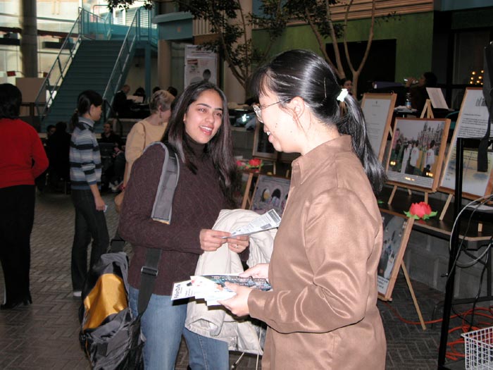 有一位法轮功学员的老师也来参加了画展,她为法轮功学员在中国所遭受的迫害而泣不成声,并为她的学生能做这样有意义的事而感到自豪。