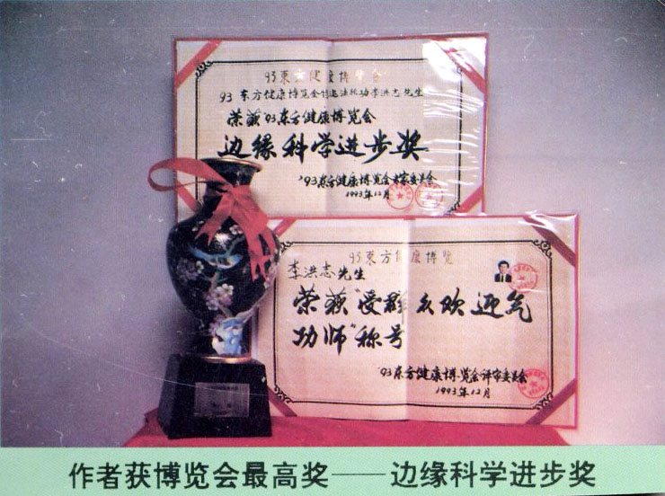 ![]() 李洪志老师93年北京健康博览会荣获“受群众欢迎气功师”称号及最高奖“边缘科学进步奖” |