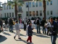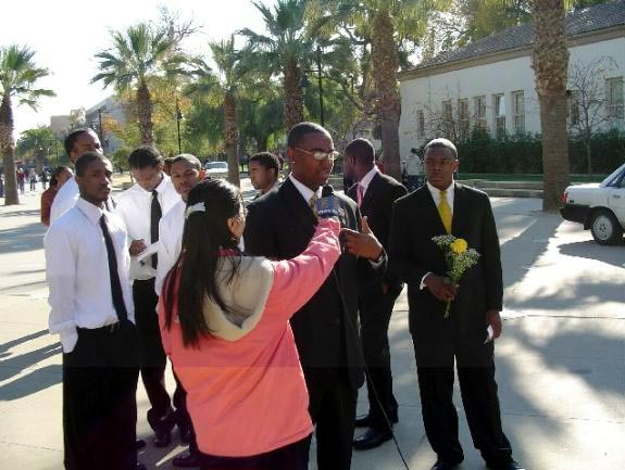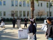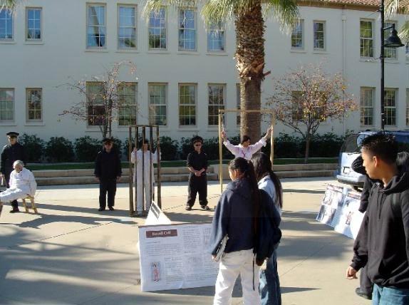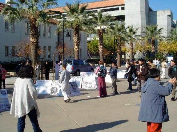 圣荷西加州州立大学的一名女教师含着眼泪说:“真是罪大恶极呀,怎么有人能做出这么恐怖的事情?”有一阵子,大约有四十多名学生来看酷刑展,他们都摇着头表示不敢相信就在此时此刻会有这样的事情发生。有一群结伴而来的学生在了解迫害真象后,每个人都在我们的征签表上签了名,呼吁加州参议员支持国会304号决议。