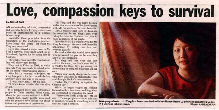 报道说,李迎和未婚夫李麒忠于2001年在中国相识,那时,李迎女士被迫参加“洗脑班”。李先生回到悉尼后,李迎女士消失了三个月,然后才有人得知她被关入了劳教所。李迎的未婚夫、荷姆布什(Homebush)的居民李麒忠说:“当时情况非常艰难。我不知道她是否还活着。”他在澳洲为营救她而付出了努力。 俩人最近得以团聚,他们将于下个月结婚。