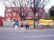 爱尔兰大法弟子中使馆前要求法办江罗刘周(图)