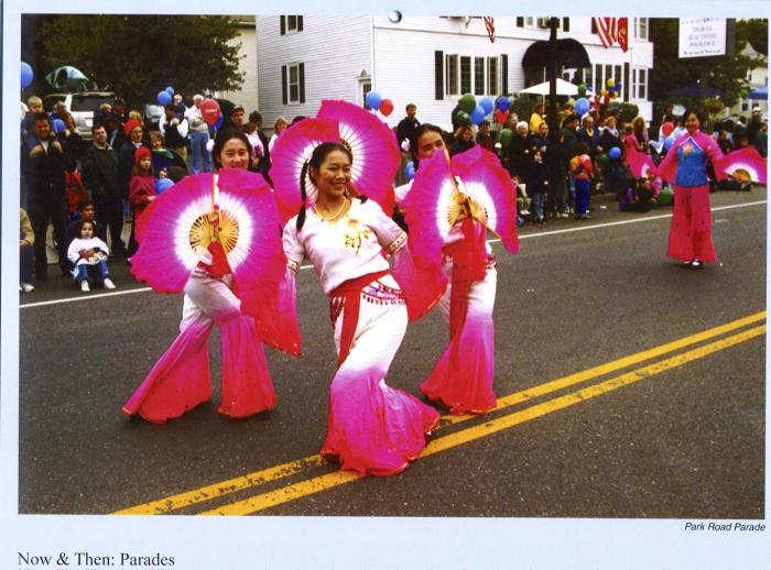 这个2004年历10月份的主题是“今与昔:游行”,以法轮功学员的表演体现今日该市游行的风貌,并在月历右下角配旧日游行的黑白照片以作为对照。这真是:法轮旋转处, 万象更新时。