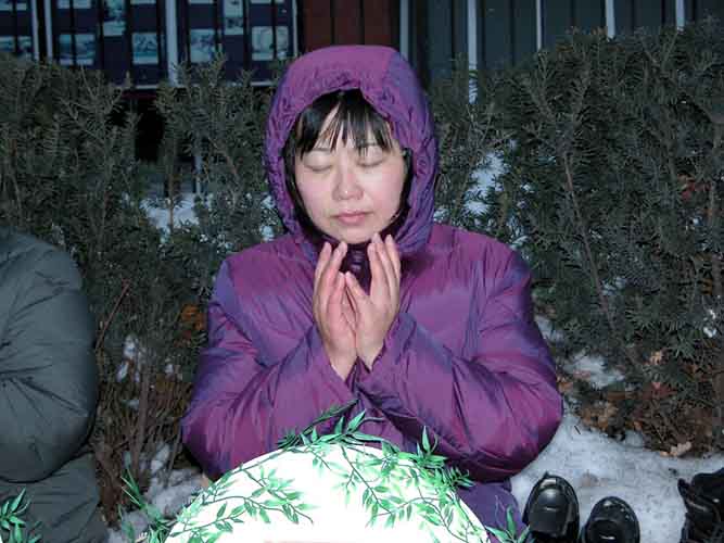 另一位法轮功学员林小姐说,今天是情人节,本来要和男朋友共度节日。但因为最近在中国大陆对法轮功的镇压加剧,所以也赶到中领馆参加请愿活动,声援国内的大法弟子。林小姐还说,我们虽然在海外,但我们海内外的法轮功的心愿是一样的,就是用和平理性的方式要求中国当局停止迫害法轮功,要求法办迫害法轮功的凶手,同时希望人们能明白不要追随江氏集团迫害法轮功,任何人迫害法轮功都要承担责任,因为历史是公正的。