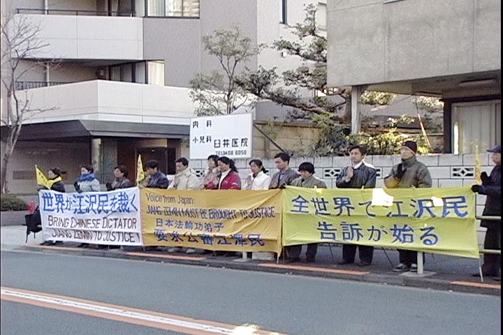 【明慧网2004年2月16日】2月15,日本关东地区数十名大法弟子陆续来到中国驻日本东京大使馆前,打出三面横幅,分别用中文和日文写着大法弟子的呼吁:把江泽民送上法庭,全球公审江泽民。
