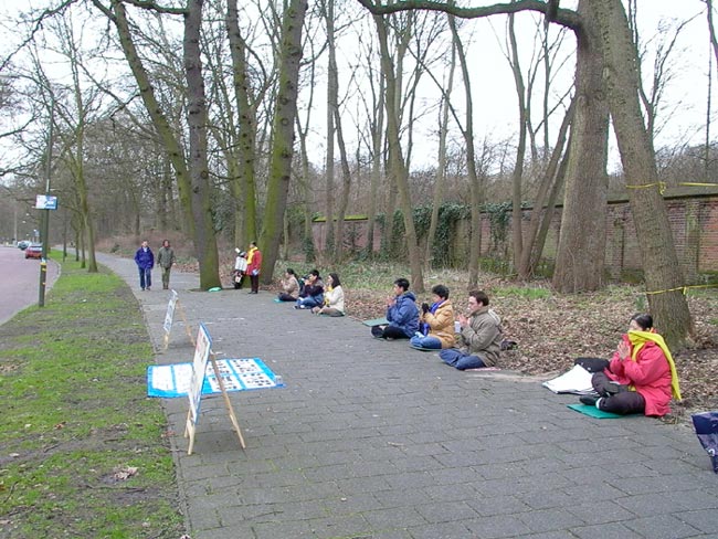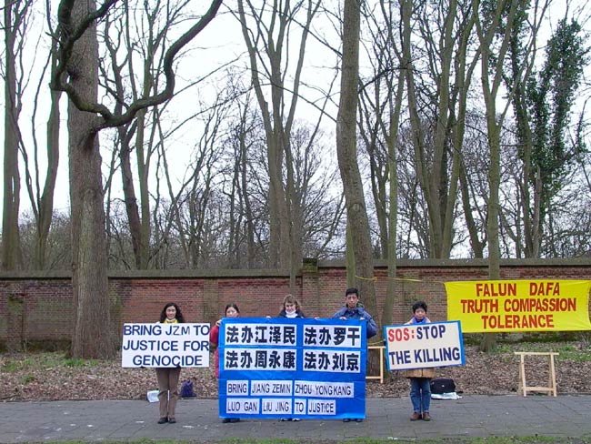 折磨的消息,2月15日下午,部分荷兰法轮功学员来到海牙中国驻荷大使馆前请愿,强烈要求法办迫害法轮功学员的元凶江泽民、罗干、刘京、周永康。
