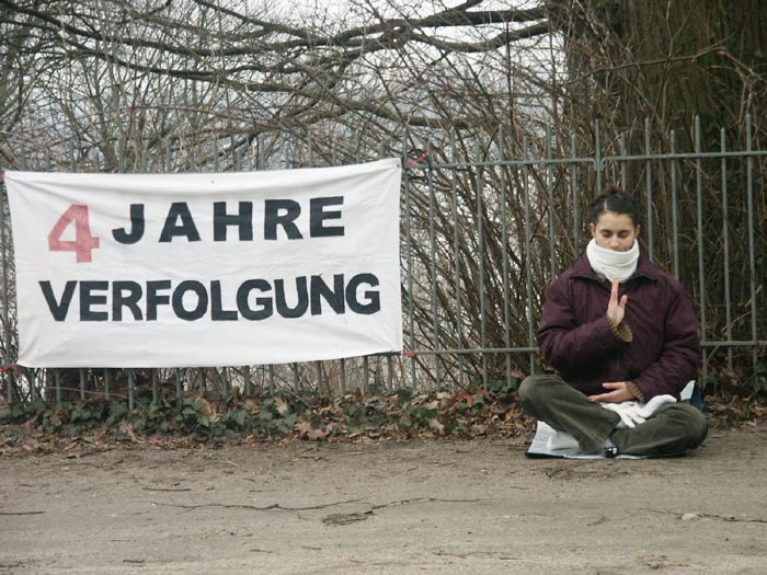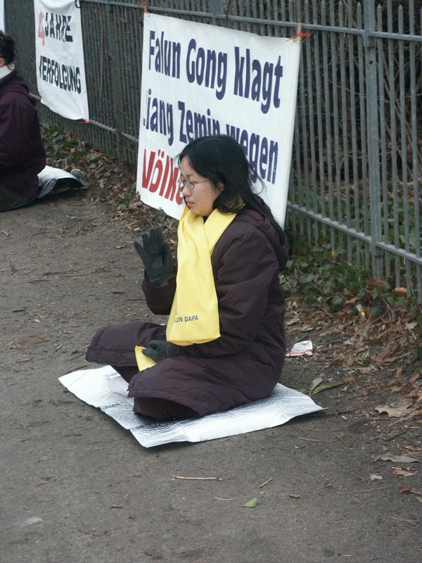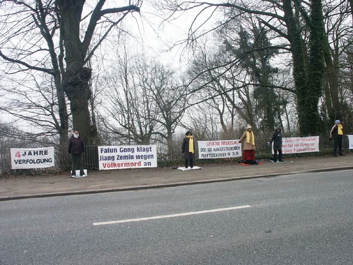 汉堡的法轮功学员茨维娅(Szilvia)说:“我们三年来一直坚持在中国领馆前请愿,就是想传达给中国政府两个信息:立即停止迫害法轮功,法办江××。今天我们来到这里是为了支援全球性的严惩迫害法轮功的以江为首的罪犯的呼吁。”