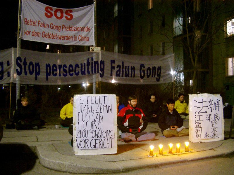 继上周四,奥地利的法轮大法学员于2月17日周二晚再一次在中国驻维也纳使馆前举行烛光守夜,强烈要求中国政府法办对法轮大法学员进行群体灭绝的元凶江泽民及其帮凶罗干、刘京、周永康,并立即停止对法轮大法学员的残酷迫害。