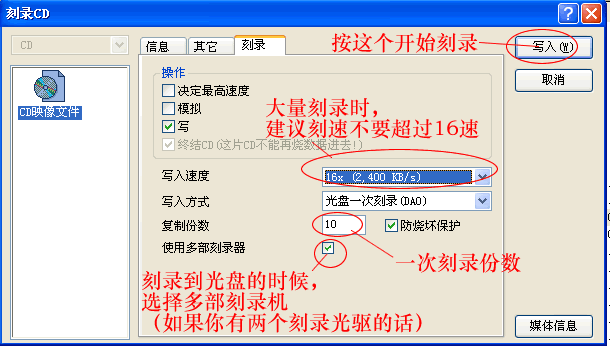 选中刚才刻好映象文件以后,按“写入”就可以大量刻录了。