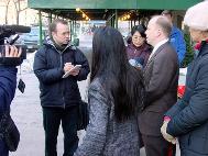 之后新闻发布会主持人回答了媒体提问。记者们对美国公民Dr. Viviana Galli,和Dr. Sunny Lu的经历表示极大的关注。据介绍,当时,他们身穿印有法轮功标记和「法轮大法」字样的衣服。他们向法国警方询问自己被捕的理由,得到的答复竟是:「因为你们穿黄色的衣服,今天黄色是违法的。」