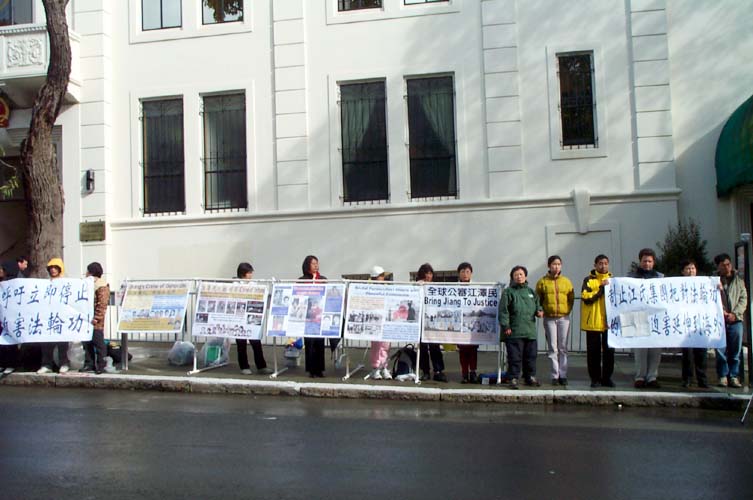 江氏集团不仅在毒害中国人民,也在蒙蔽和毒害世界各国的人民。四年多来,江氏通过驻外使领馆向各国政府散布诬蔑和陷害法轮功的黑材料,并且用政治和经济利益诱惑和要挟他国。2002年4月,在独裁者江氏访问德国期间,为了躲避法轮功学员,曾向德国警察灌输了诬蔑法轮功的谎言,导致柏林的一些警察在街头检查是否有穿黄色衣服、戴黄围巾的法轮功学员,此举曾激起当地善良民众的愤怒。后来柏林政府正式向法轮功学员道歉,并保证以后不会再有类似事件发生。