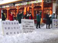 2月6日中午,针对春节间巴黎发生的,警察无理拘捕法轮功学员事件,瑞典斯德哥尔摩法轮功学员在法国驻瑞典使馆前进行了和平静坐。