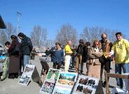 在大会主办者热心帮助下,法轮功学员们除了举办两场法轮大法介绍会外,还在博览会大厅外参观者必经之处的一片宽阔场地上设置了法轮大法展位。展台上摆放各种法轮功相关真象资料、VCD、法轮大法书籍和声援在中国受迫害的法轮功学员的签字表,展台两侧是法轮大法真象图片。