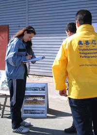 当人们来到展示法轮功学员在中国大陆遭迫害的真象展板前时,被图片上的场面震惊了,他们不能理解在现代文明社会竟然发生着这样侵害人权、剥夺信仰自由、残酷迫害人民的暴行……