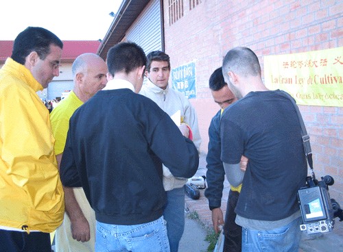 学员们随着优美的炼功音乐演示功法,前来参观的人们立即被吸引住,纷纷询问这是什么功法。在初步了解之后,很多人表示希望学炼法轮功。一位前来学功的女士还邀请学员们到她们文化中心办讲座教授法轮功。
