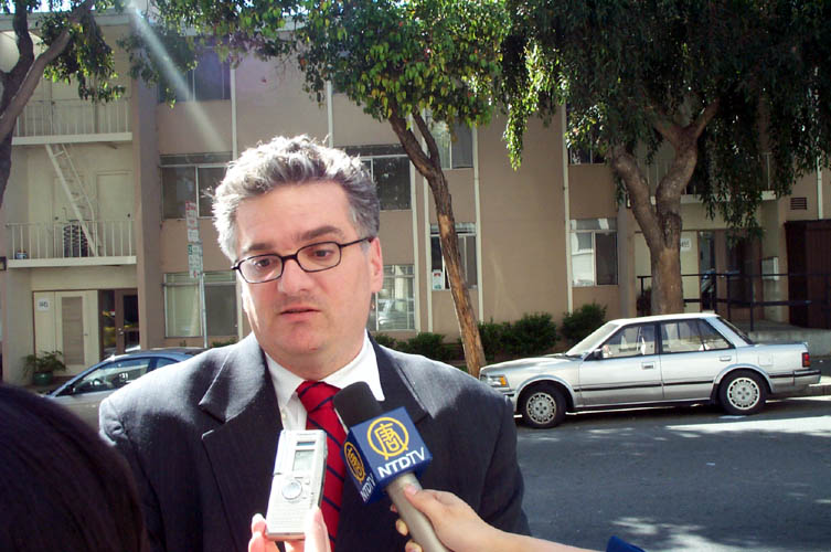史蒂夫说,我们呼吁布什政府在今年的人权大会上谴责中国侵犯人权,要求中国政府停止迫害法轮功。(明慧记者黄凯莉旧金山报道)