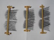 以下是王村劳教所奴役法轮功学员生产的部分产品图示:这是粘的假眼睫毛的半成品,一副假睫毛要用镊子夹300多根毛,比着模具粘在胶带上,价值0.27元/副。