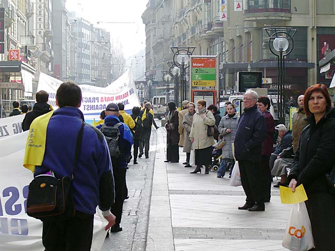 针对法轮功学员的要求把镇压法轮功直接责任人绳之以法的呼吁,日内瓦州议员Roth-Bernasconi女士在致词中说:“没有任何一个宗教,任何一种组织赋予任何人用酷刑迫害他人的权力。如果有人这样做了,那么别人是可以惩罚他们的。在反对镇压法轮功的问题上,我和您们站在一起。”